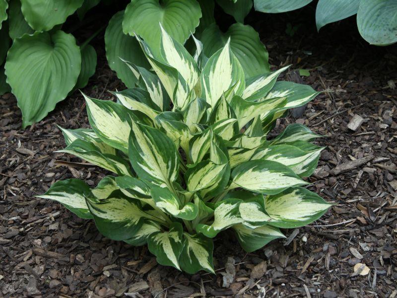 A stunning sport of 'Loyalist'. The leaves have white centers with dark green margins. The white centers have soft green speckling which darkens through the season. Grows 15” tall and 25” wide. Lavender flowers appear on creamy white scapes in mid summer.