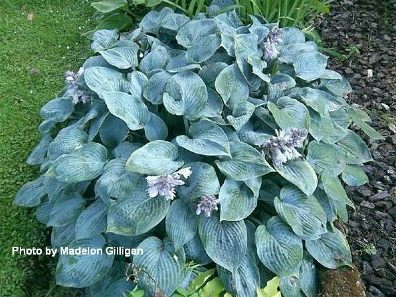 Frosty blue foliage that is slightly cupped. It is one of our favorite Tardianas, with excellent substance and texture. Grows 14" tall and 24" wide. Lavender flowers in mid summer on 18" scapes.