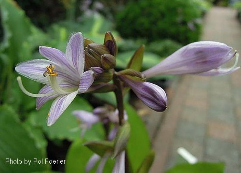 An attractive yellow clump with heart shaped leaves, especially bright in the spring. The leaves are held on dark petioles. The very dark flower scapes have a purple streak. The dark petioles and flower scapes apparently give the plant its name. Grows 10” tall and 16” or more wide. Lavender flowers in mid summer.