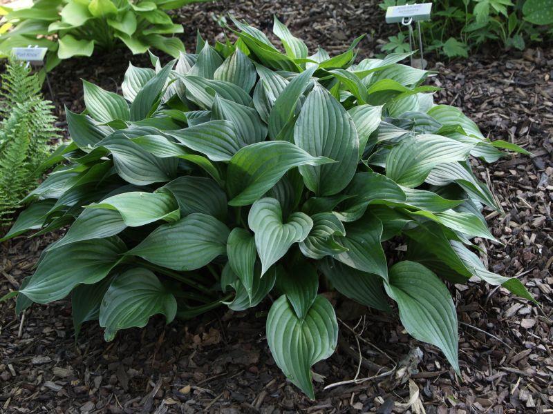 A beautiful, very dark green hosta from the late Russ O'Harra. The leaves twist to a point at the tips. We have loved this hosta since we first saw it in his Des Moines garden in the late 1980s. There is just something very distinctive about it. Grows 12" tall and 36" wide. Nice lavender-purple and white striped flowers in early summer.
