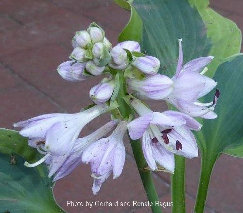 This petite and flirty hosta has very wavy, thick, blue-green leaves with creamy yellow to creamy white margins. The leaves are twisted and turns, forming a most unusual looking, mini clump that grows around 5" tall and 13" wide. Another great addition to the 'Blue Mouse Ears' family of hostas. Lavender flowers with purple stripes appear closely packed together on proportionately sized scapes in early to mid summer.