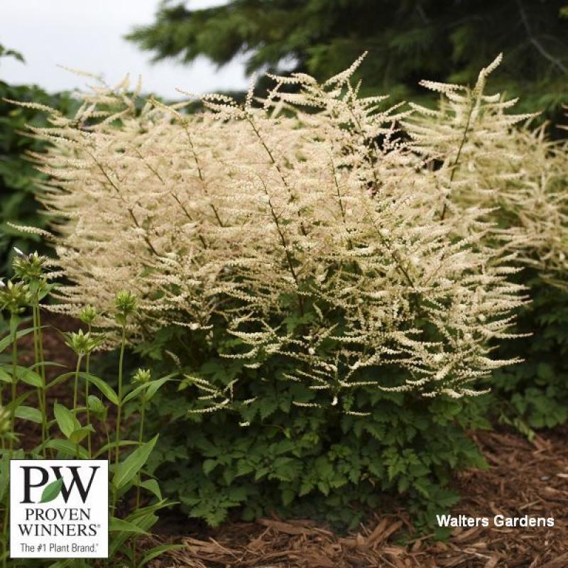 This part shade-loving plant produces beautiful sprays of lacy, cream-colored flowers in late spring to early summer. It is very floriferous when it's in bloom, completely covering the deep green foliage. Goatsbeard is similar in appearance to Astilbe in the garden, but it is more drought tolerant.