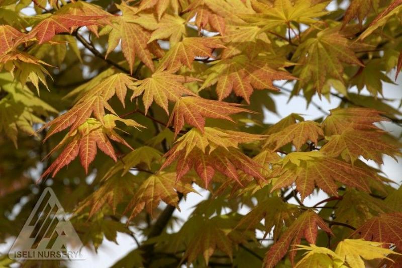 'Autumn Moon' is Full Moon Maple with spring foliage that is uniquely burnt orange to gold. Summer foliage takes on pink to purple tints, and then turns gold with red highlights in fall. Best grown where it is protected from winter winds and where it gets morning sun and afternoon shade. Great for smaller gardens, it grows slowly to 15' tall and wide. Hardy to Zone 5.