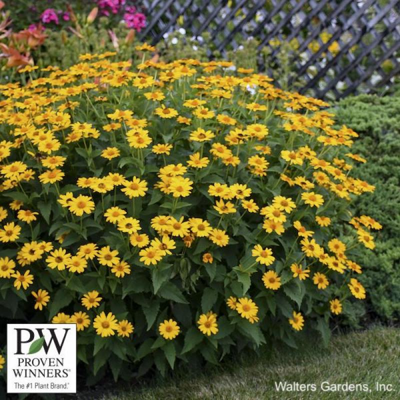 (False Sunflower) golden yellow, daisy-like flowers with deep green foliage; blooms mid to late summer; 24-36 inches; full to partial sun; Zone 3