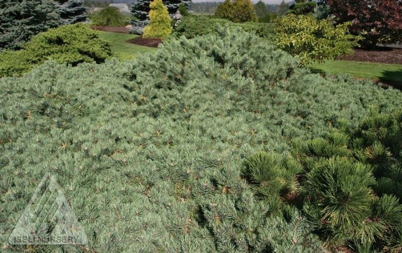 This vigorous spreader is an excellent groundcover that spills over banks or walls, and rambles through garden beds. With maturity, layered branches mound in the center and taper down to the edges. A blue cast adds interest to the thick, green needles of this excellent selection. of dwarf Scotch Pine. Best in full sun. Grows 2' tall and 10' wide. Hardy to Zone 3.