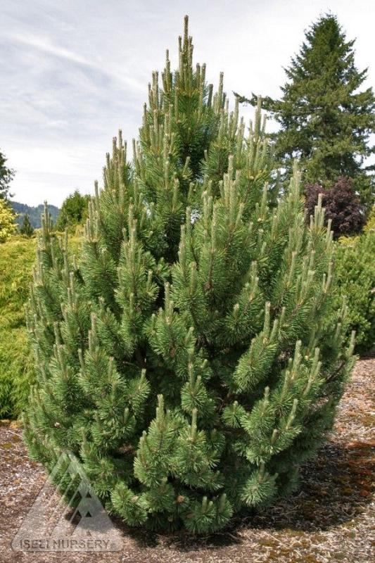 A perfectly shaped, hardy, dwarf pine tree for the north, it's a living Christmas tree with compact, pyramidal form, good winter color, and the tough constitution and hardiness of other mugos. The foliage is rich green with a hint of gray/blue. Best in full sun. Grows 10-15' tall and 6-12' wide. Hardy to Zone 2.