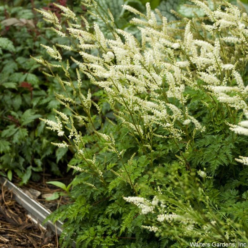 The rather fine, ferny foliage of dwarf goat's beard forms a small clump, producing creamy white spikes in early summer. The flowers look like astilbe flowers, but the Aruncus is more drought tolerant. Grows best in part to full shade, where it will grow 12 inches tall. Makes a good companion to hostas and other shade perennials. Hardy to Zone 3.