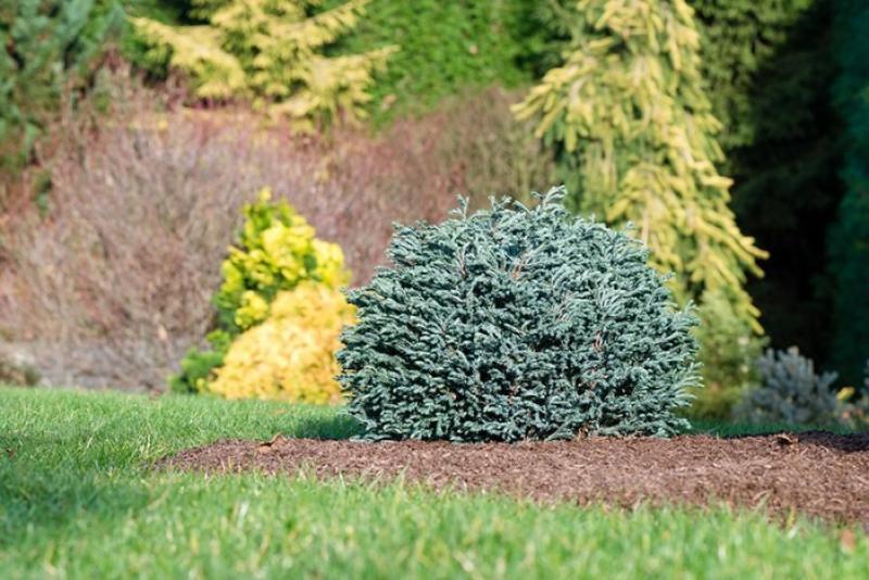 'Blue Moon' forms a dwarf, compact ball of bright, steel blue foliage. Little shearing is required to maintain its shape. It thrives best in sun with moist, well-drained soil. Garden size is 4' tall and wide. Hardy to Zone 4.