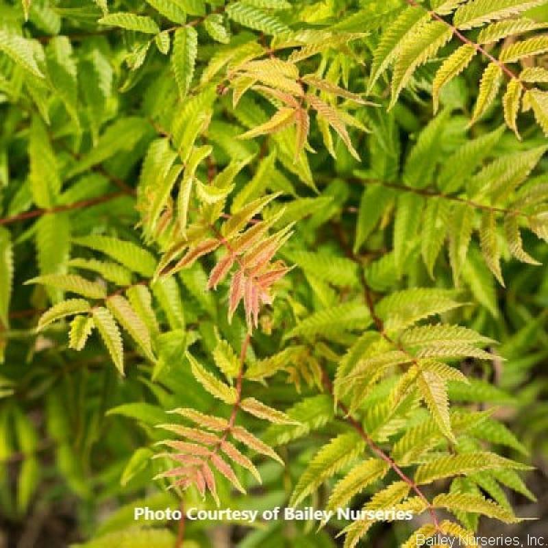 Match Ballâ„¢ forms a cute, round ball of pretty fern-like foliage which emerges in spring with a strong tint of orange and matures to green. Unlike other varieties, it doesn't sucker so it maintains a tight, round form throughout the season. Flowers sparsely. Turns yellow in the fall. Tolerates full sun, but likes a little afternoon shade. Grows 2-3' tall and 3-4' wide. Hardy to Zone 3.