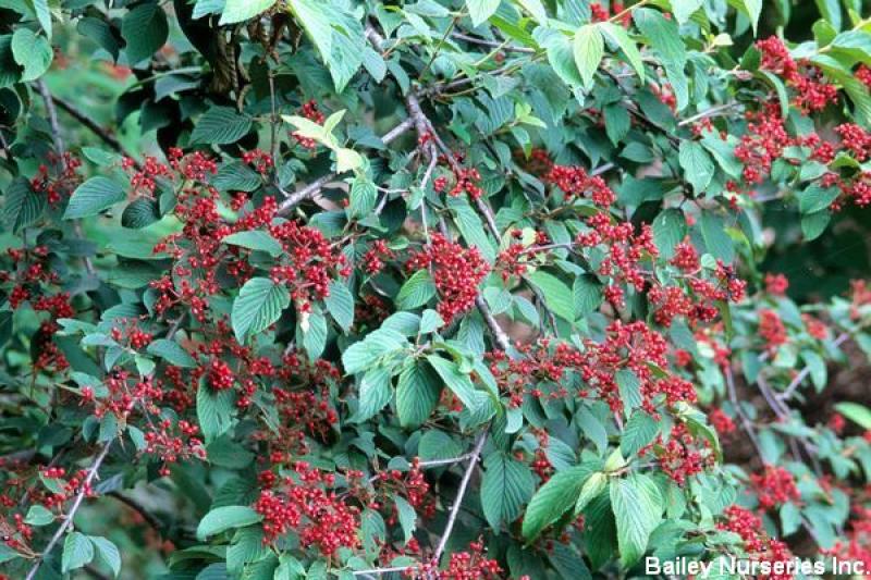 Beautifully layered, horizontal branching forms a lovely, distinctive plant. Creamy white flowers put on a nice show in spring. Its excellent red fall color makes for a good substitute for burning bush. Grows well sun to quite a bit of shade to 8-10' tall and wide. Hardy to Zone 5.