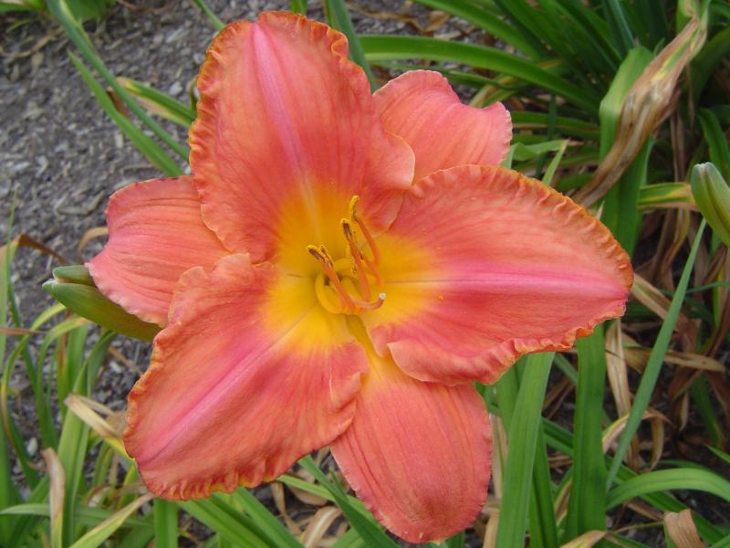 (Moldovan 1993) 32 inches-M-FR-D-TET-5.5 inches; lovely coral with a darker coral band; fragrant