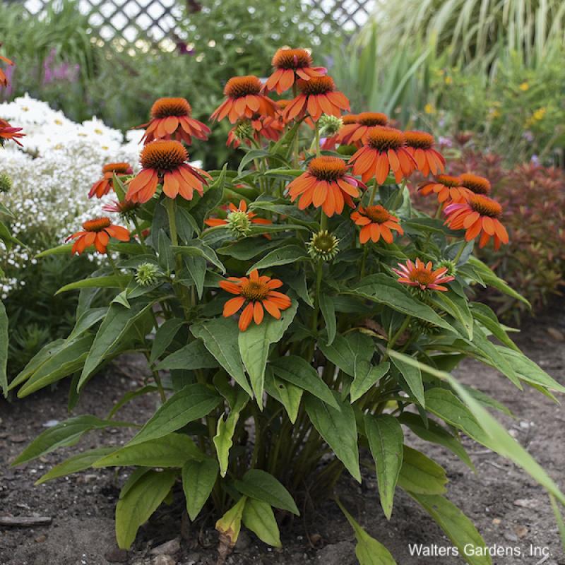 SOMBRERO® Adobe Orange has 2½-3", intense orange flowers that will make other Echinacea pale in comparison, with a matching orange cone that really makes the color pop. Dark green foliage is completely covered with flowers. One of the best orange Echinacea to date. Grows in full to mostly sun, 18-20" tall and wide. Hardy to Zone 4.