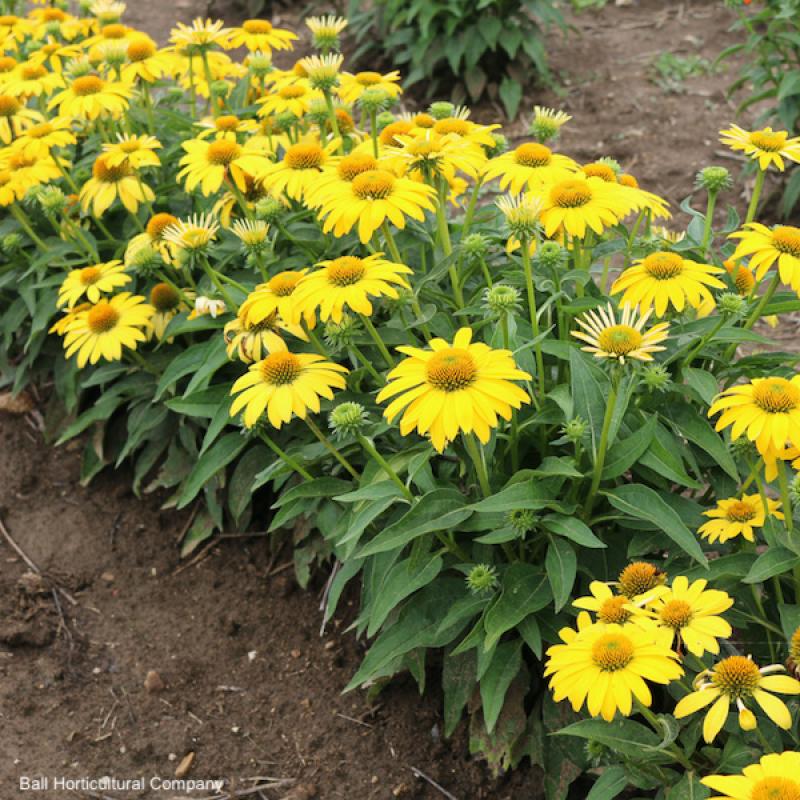SOMBRERO® Lemon Yellow II is an improved variety with wider, overlapping petals and a more compact habit. Rich yellow flowers with a copper cone are produced on very well-branched, sturdy plants. Grows in full to mostly sun, 18-22" tall and 22-24" wide. Hardy to Zone 4.