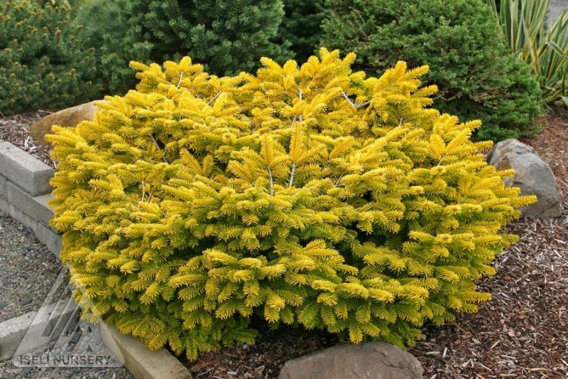 The bright, golden yellow of this low, spreading fir is especially striking in winter when much of the garden's color has faded. It will naturally develop a broad upright habit with maturity. During the rest of the year, the versatile, useful plant brightens areas of partial shade, which it appreciates .Garden size is listed at 3' tall and 6' wide. Hardy to Zone 5.