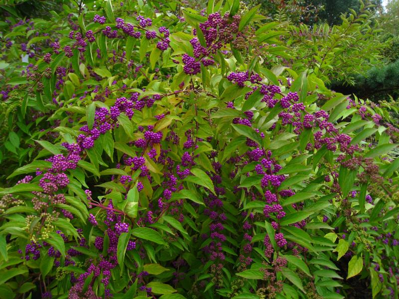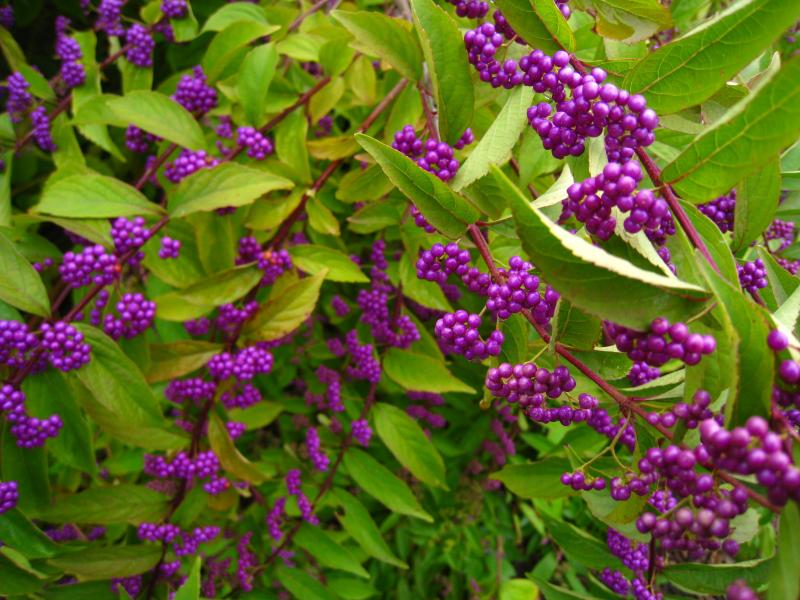 This cultivar (a.k.a. 'Issai') from Japan was selected for its outstanding compact habit and early fruiting age. Delicate pink flowers in spring give way to beautiful lavender-purple berries produced along the stems in late summer. It grows 3-4' tall and wide in full sun to part shade. And it's deer resistant. It is hardy to Zone 5, and crown hardy to Zone 4. After a severe winter, if the plant had died off above ground, simply prune the plant to the ground, and it will explode into a full grown bush again that same year.