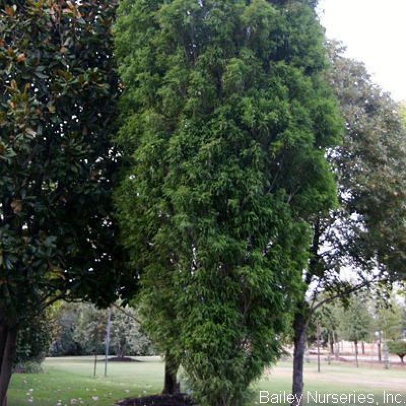 If you're interested in something narrower, Shawnee Brave™ is a cultivar that is denser and only gets 15-20' wide.  Lindsey's Skyward® produces no surface roots or knees and only gets 5-10' wide, making for a soft, unique vertical accent.