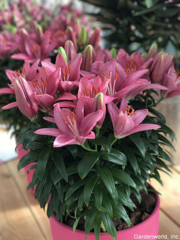 (Asiatic Lily) rich pink, large flowers; 14-16 inches; full sun; Zone 3