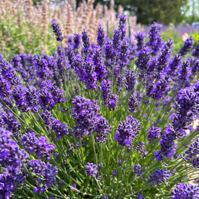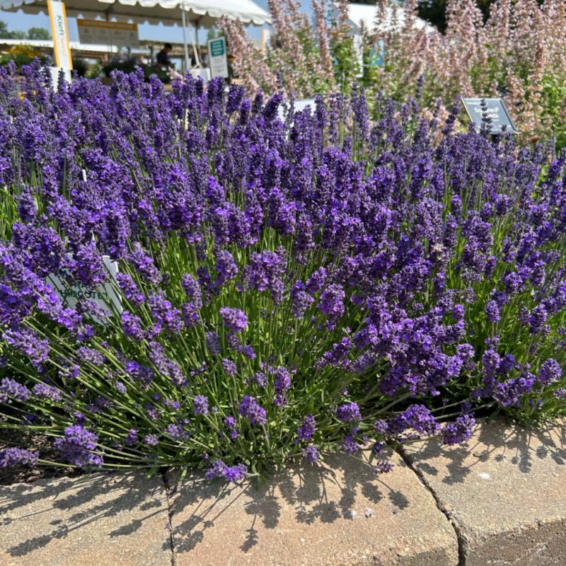 Lavandula 'SuperBlue' is a compact, highly fragrant lavender variety known for its deep violet-blue flower spikes that bloom from late spring to summer. Its dense, mounded growth habit, reaching about 10-12 inches tall, makes it perfect for borders, containers, and cottage gardens. The silvery-green foliage provides year-round interest, while the aromatic blooms attract pollinators like bees and butterflies. Drought-tolerant and deer-resistant, Lavandula 'SuperBlue' thrives in full sun and well-drained soil.