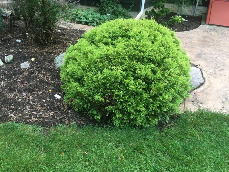 A globe shaped arborvitae with intense, orange-yellow color in spring and summer, turning copper-orange in winter. The soft juvenile foliage responds well to regular shearing to control shape and size. Plant in full sun to part shade. Grows 3-5' tall and wide. Hardy to Zone 3.