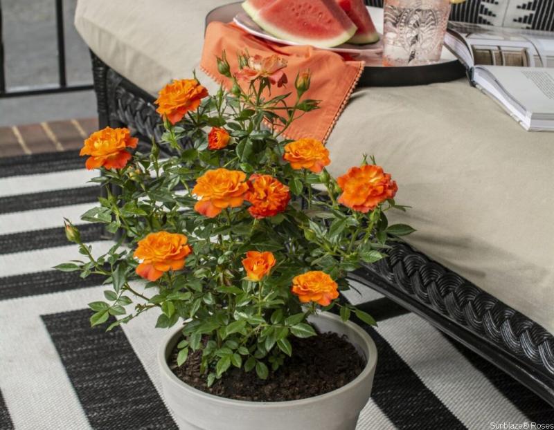 This miniature rose with repeating bright orange blooms makes a great patio or small garden plant. Flowers pop up from spring to fall and have a light, spice fragrance. SunblazeĀ® Mandarin grows 15 inches tall and wide in full sun and is hardy to Zone 5.