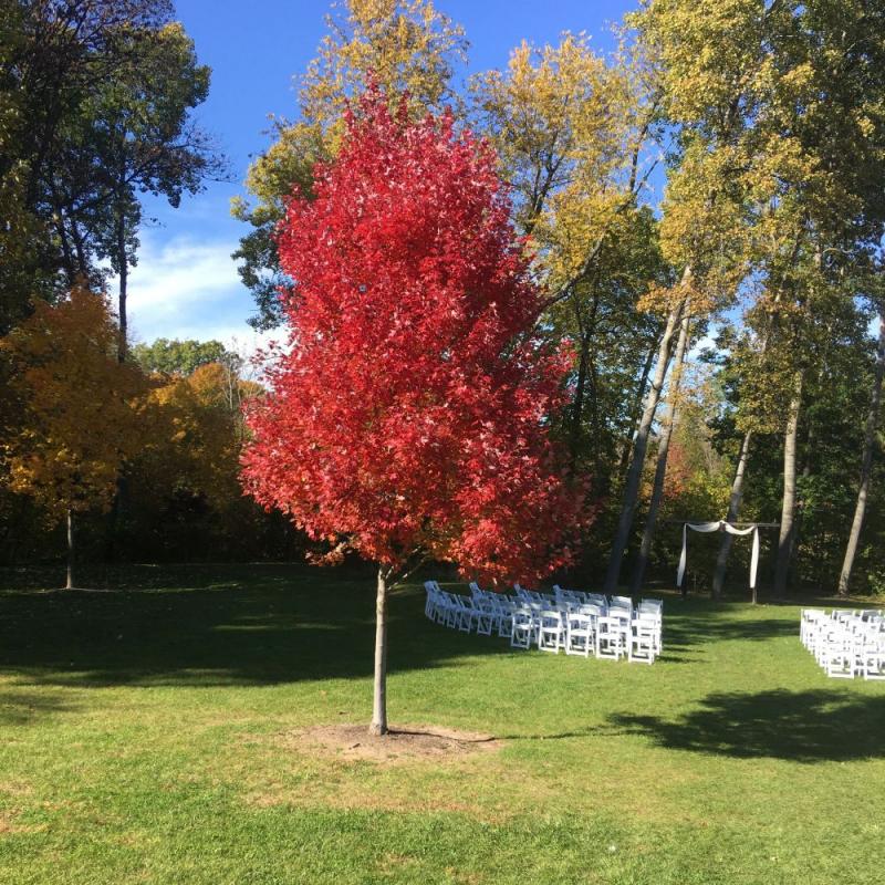 Redpointe® has become one of our favorite red maples because of its fast growth rate, strong central leader, and perfectly shaped pyramidal form. The dark green foliage turns a brilliant red in fall. We have at least five of them planted at the Gardens, including two by the wedding site behind the Barn, and they put on a great fall show. Redpointe® grows 45' tall with 30' spread. Hardy to Zone 5.