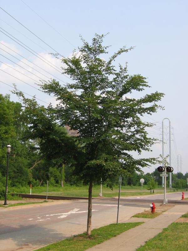 (a.k.a. 'Morton Glossy') Remarkably dark green and glossy foliage and a sturdy, symmetrical growth habit distinguish this Morton Arboretum hybrid. It is an excellent, fast-growing shade tree with very good disease resistance. The glossy foliage turns yellow in fall. Grows 50-60' tall and 35-40' wide. Hardy to Zone 4.