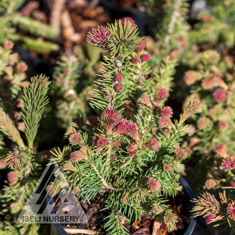 This Red tipped Norway Spruce is similar to 'Rubra Spicata' but with brighter red tips in spring, and a more compact habit. The red tips last for two weeks and gradually turn green. Grows in full sun to part shade. Garden size is 8' tall and 4' wide. Hardy to Zone 3.