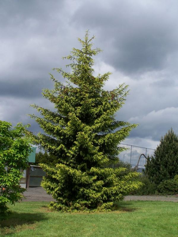 This full, upright spruce is an excellent choice for adding bright, year-round color to a large garden. Its small, glossy needles emerge electric yellow in spring and gradually soften to a rich gold that stands out against darker, interior foliage. Best color in full sun, although protections may be warranted in scorching summer climates. A slow grower, its garden size is 25' tall and 15' wide. Hardy to Zone 4.