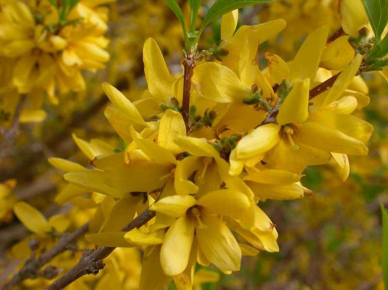 This hybrid forsythia is noted for a more compact growth habit and improved hardiness. It produces bright yellow flowers before the medium green foliage emerges. Plant in sun to part shade. It will grow 6 feet tall with a spread of 5 feet. Hardy to Zone 5.
