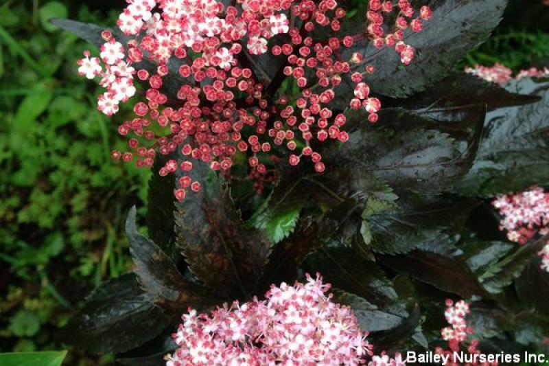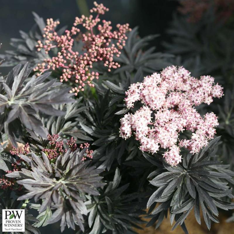 This extremely upright elderberry selection makes for a unique focal point in any garden. Near-black foliage forms a striking fastigiate habit. Pink flowers in early summer contrast beautifully with the deep burgundy foliage. Dark berries attract birds in the fall. A great specimen for added interest and texture. Grow as a shrub or cut back like a perennial. Grows 6-8' tall with a spread of 3-4'. Hardy to Zone 4.