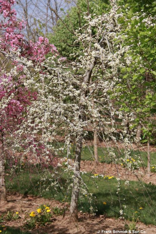 Vanilla Twist® is a beautiful weeper with white flowers in early spring. Heart-shaped foliage emerges after the bloom is done. The weeping form provides an interesting silhouette in winter. Plant in full to part sun Grows 12' tall with a spread of 8'. Hardy to Zone 5.