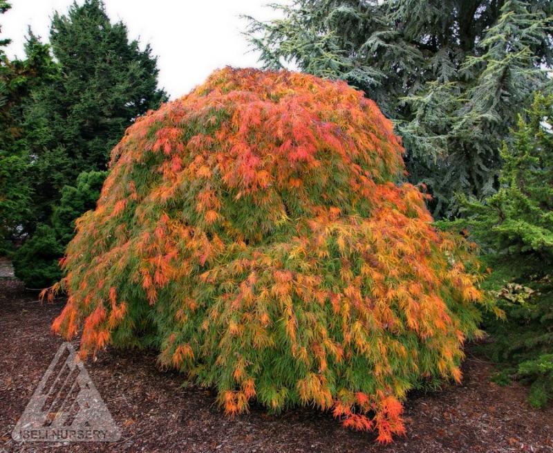 This outstanding, green laceleaf weeper maintains a fresh, bright green appearance all summer. The foliage turns a brilliant golden orange in fall. Grows best in part shade. Only 6' tall and up to 8 'wide. Hardy to Zone 5. 'Viridis' has grown well for us. It brightens up a shady location better than the red-leaf varieties.