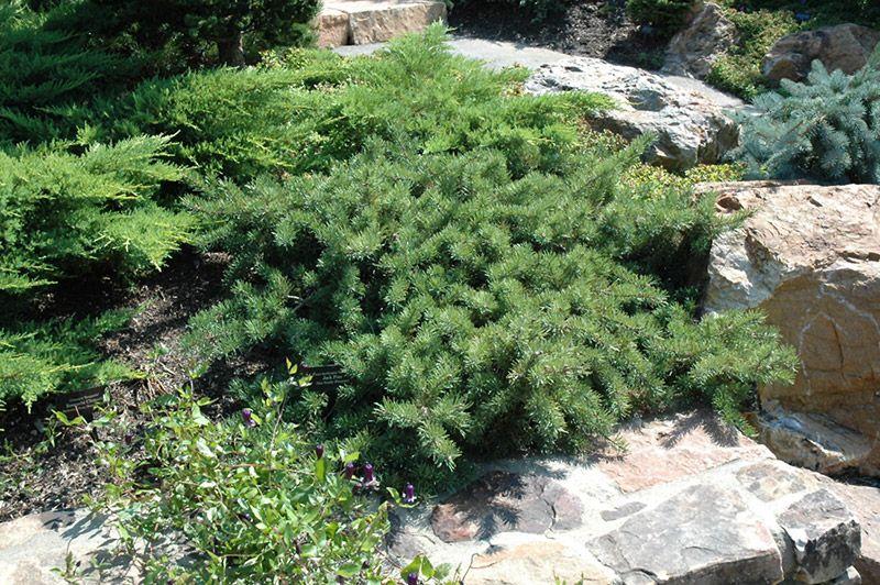 'Schoodic' (pronounced skoo-dik') is an exceptional, dense, ground-hugging native Jack Pine that was found on Schoodic Peninsula in Maine. Use the spreading, low-growing conifer with short, emerald green needles to drape down a bank or sprawl over boulders or challenging sites. It's extremely hardy and adaptable, tolerating heat, cold, and dry, sandy or poor soils. Grows in full sun. Garden size is 2' tall and 4' wide. Hardy to Zone 2.