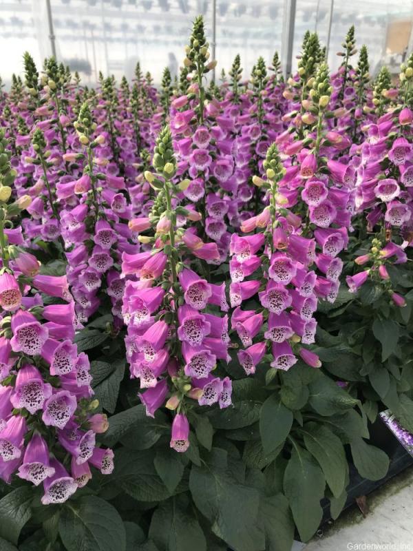 This improvement over the original 'Dalmatian Purple' displays greater vigor, better uniformity, and an earlier bloom time. Outward facing, lilac purple flowers with maroon spotted throats bloom in early summer. Grows 2-3' tall with a spread of 1'. Foxglove prefers acidic, moist, well-drained soil. In most climates partial shade is best, though it will grow in full sun.