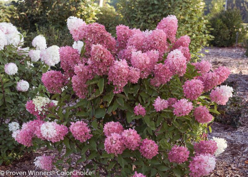 The blooms of Zinfin DollĀ® turn the deepest red of any of the white-turning-pink/red hydrangeas we have seen. Mophead flowers start pure white, and then go through a fantastic transformation to pink and then deep red, providing over three months of great color. As with any tree hydrangea, you may want to stake the trunk for a few years until the trunk thickens up. Prune back the head by at least one-third, especially in the early years to keep the plant from being too top-heavy. This ornamental tree with eventually grow 8-10' tall and 5-6' wide. It can handle a lot of sun, but some afternoon shade will make the blooms retain their beauty longer. Very hardy to Zone 3.