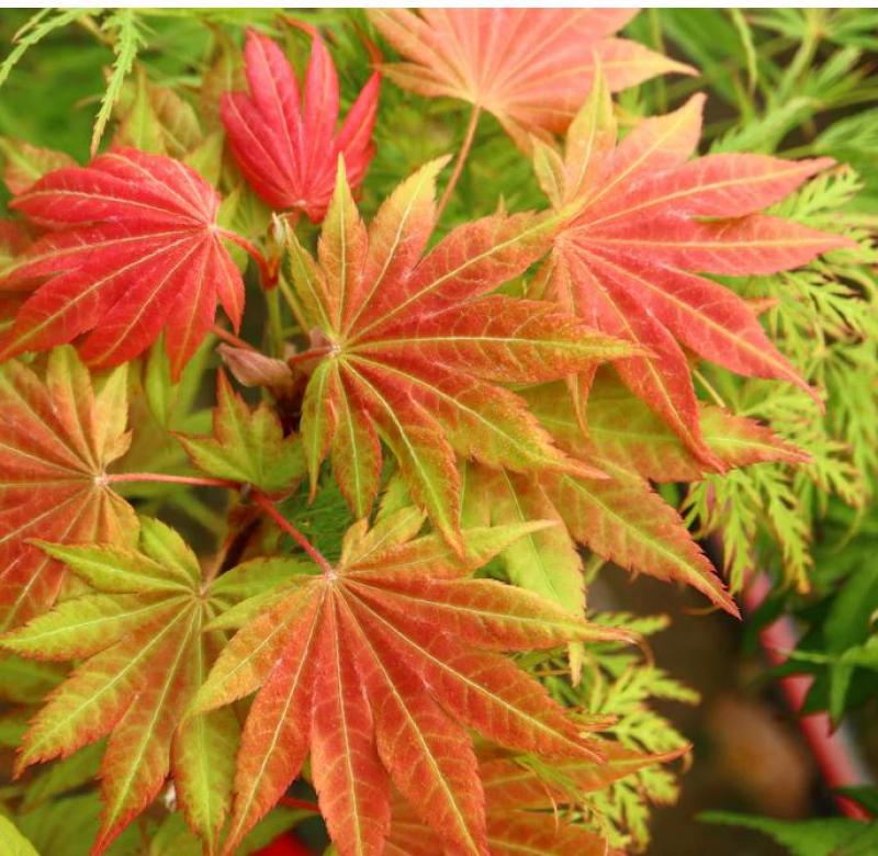 Moonrise™ has emerging leaves of bright red, orange and salmon which overlay the lime yellow to green tones of older leaves throughout spring and well into summer. Then, the foliage turns lime green to golden yellow, depending on how much sun it gets. Lots of morning sun will bring out the yellow, but some afternoon shade will prevent scorching, although this variety is touted as more sun tolerant than most Japanese maples. Mulch the ground around the tree to help conserve moisture. The tree grows into an upright, oval shape, up to 18' tall and 10' wide. Hardy to Zone 5.