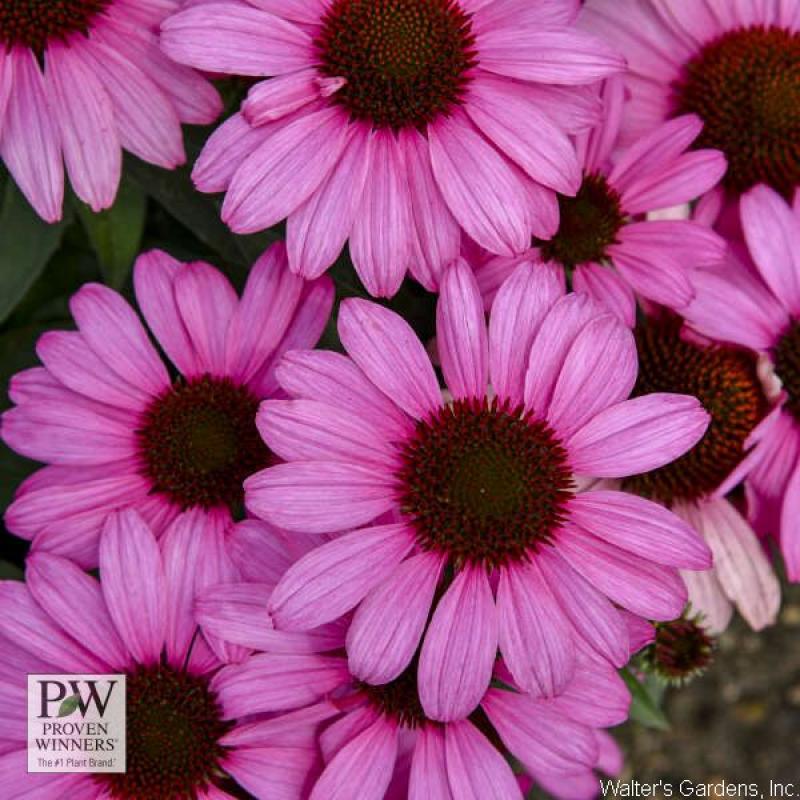 A member of the COLOR CODED® collection. 4½" fuchsia pink flowers are made of overlapping, horizontally held petals for an exceptionally showy display. The dark cone and stems of the plant contrast with the brightness of the petals, accentuating the vibrancy of the flowers. Exceptional garden performance. Grows in full to mostly sun, 20-22" tall and 16-18" wide. Hardy to Zone 4.