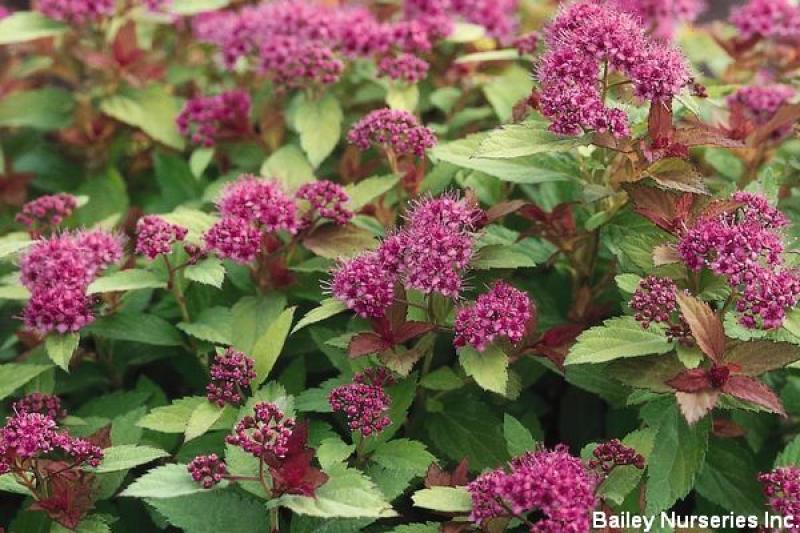 Vibrant red shoots emerge in spring and mature into rich bronze, red-tipped foliage. Clusters of deep purple-pink flowers cover the plant in early summer. In fall, the foliage takes on rich russet tones that remain colorful well into late fall. If trimming is desired, do so right after the blooms have faded. Does best in full sun. Grows 2' tall with a spread of 3' and is hardy to Zone 3.