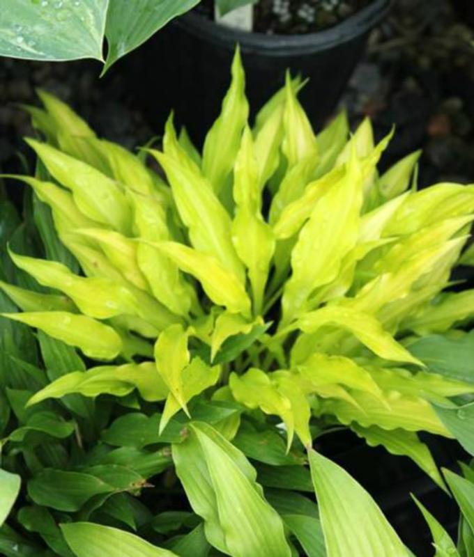The very bright yellow foliage of ‘Fairy Dust’ holds its color all season. And the foliage has good substance, so it holds up well. Grows into a cute clump 5"h x 8"w. Lavender flowers in summer.
